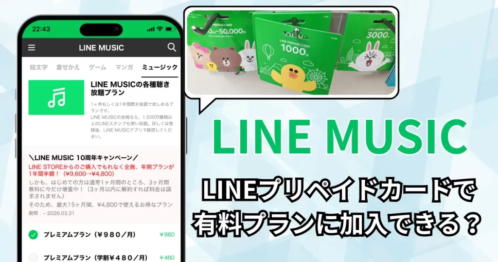 LINE MUSICはLINEプリペイドカードで課金(加入)できる?