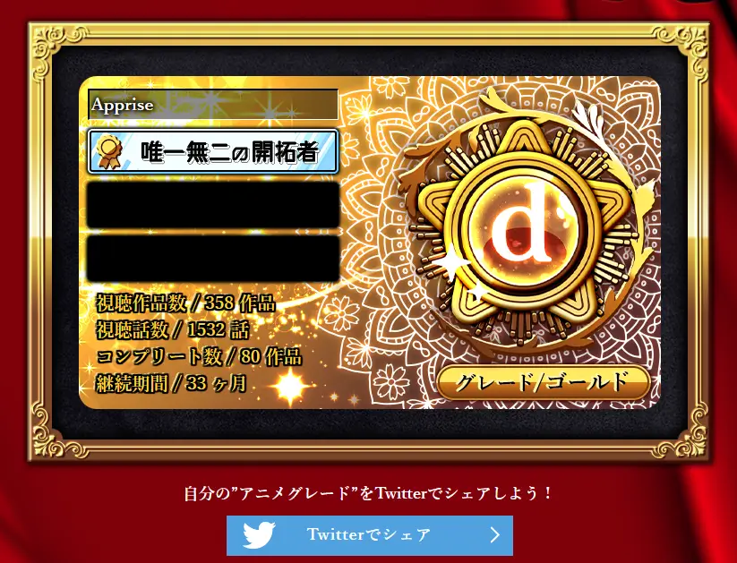 グレードが上がったり称号をもらっても、大きな特典はありませんが、dアニメの楽しみ方として覚えておくといいでしょう。