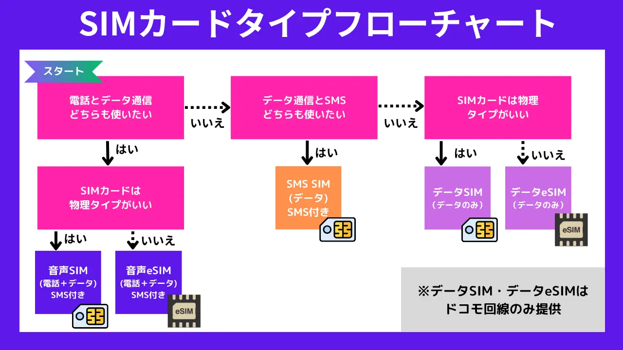使いたい機能にあわせてSIMカードタイプを決める