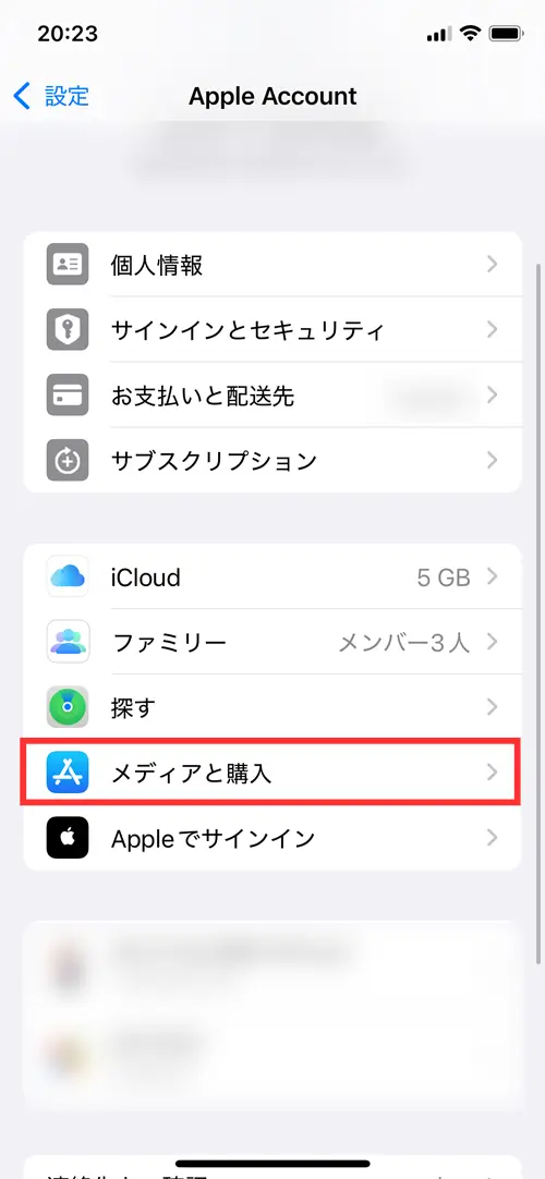 iPhoneの「設定」アプリを開き、「ユーザー名」をタップ。Apple IDのメニューが表示されます。メニュー内の「サブスクリプション」をタップし、加入しているサブスクリプションの状況を確認してください。