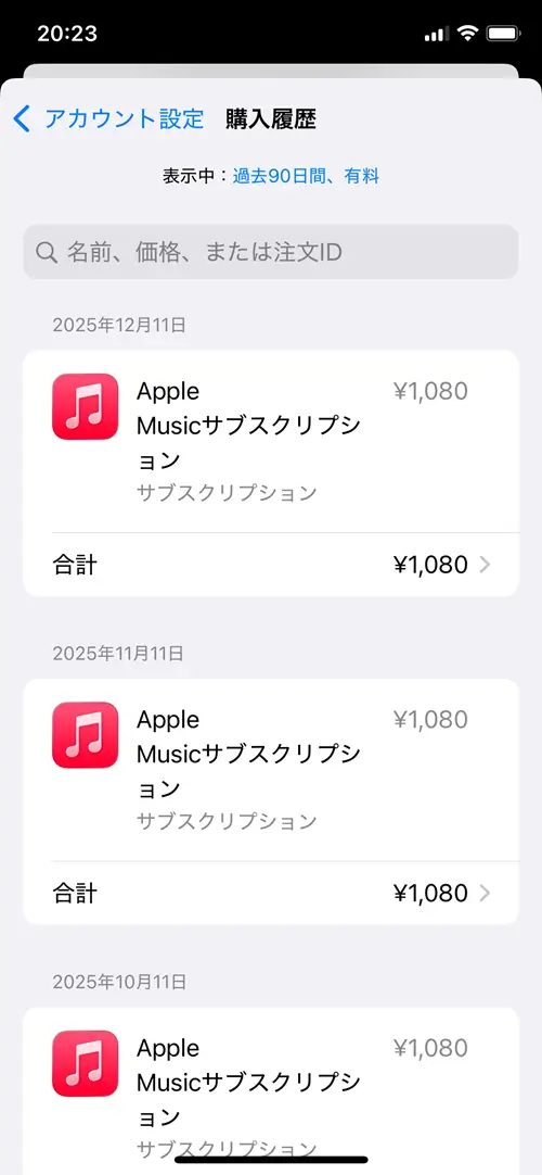 iPhoneで購入履歴を確認する方法(サブスクリプション)