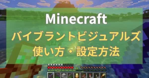 次の動画はバイブラントビジュアルズをオフにし、ツルハシなどのツールを使っている様子です。よく見ると、ブロックを壊してアイテム化から回収までに若干のラグがあるように思えます。通常プレイに大きな影響はありませんが、一切ラグのない環境が良いという人には向いてないかもしれません。