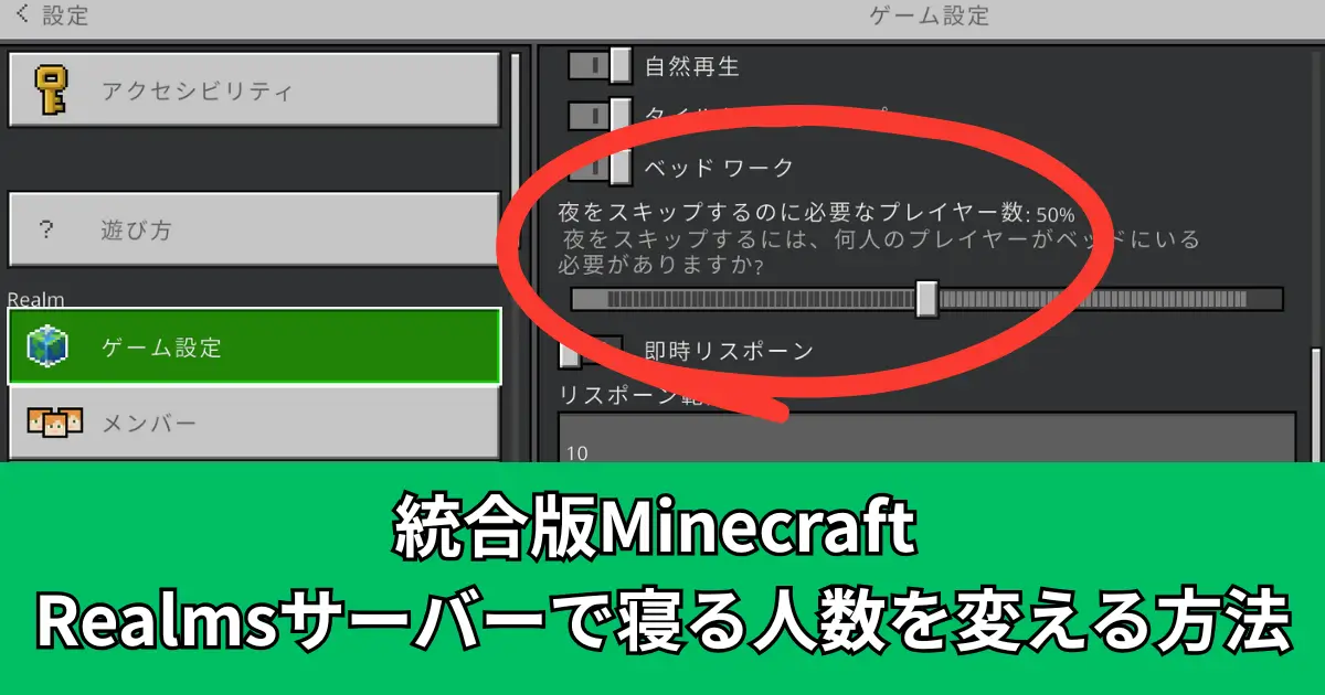 本記事では、マインクラフト(以下、マイクラ)のRealmsサーバーで寝る人数を変更する方法について解説。変更時の注意点などもあわせて解説しています。