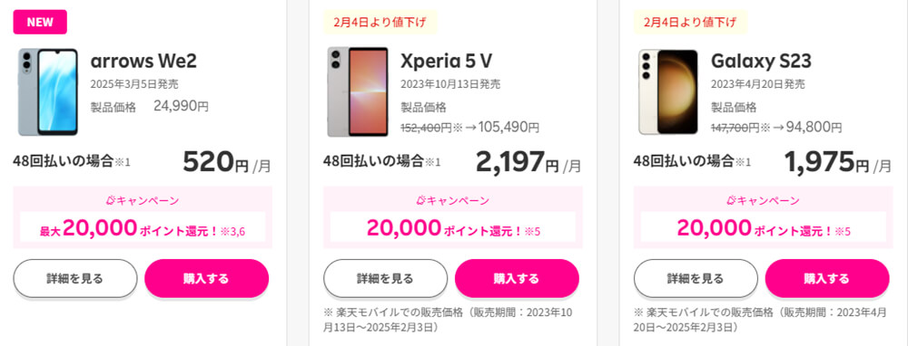 手っ取り早いのは、楽天モバイルで販売している楽天対応製品の購入です。