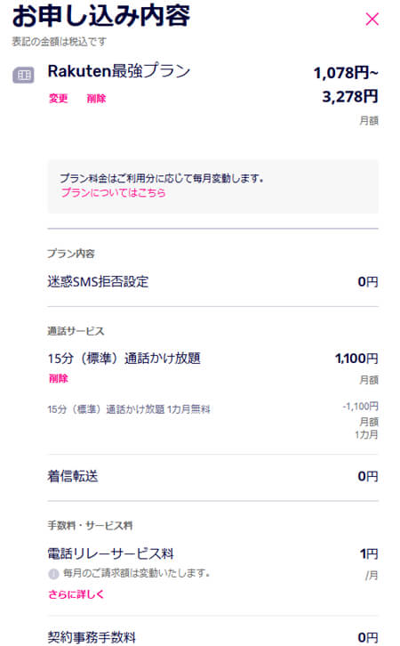 「15分(標準)通話かけ放題」の月額料金が1,100円(税込)なので、電話は楽天リンクで発信するのであれば、無理に申し込む必要のないオプションといえるでしょう。
