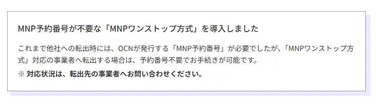 OCNモバイルONEはMNPワンストップに対応したことにより、MNP予約番号の発行不要で楽天モバイルへ乗り換えることが可能です。
