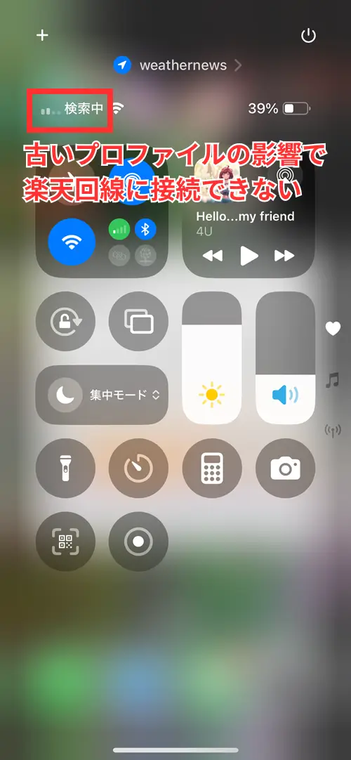 古い構成プロファイルが削除され、楽天モバイルのSIMカードを挿した状態でしばらく待つと楽天回線に接続されます。この後、楽天回線に接続されているかブラウザで確認するので、Wi-Fiはオフにしておいてください。