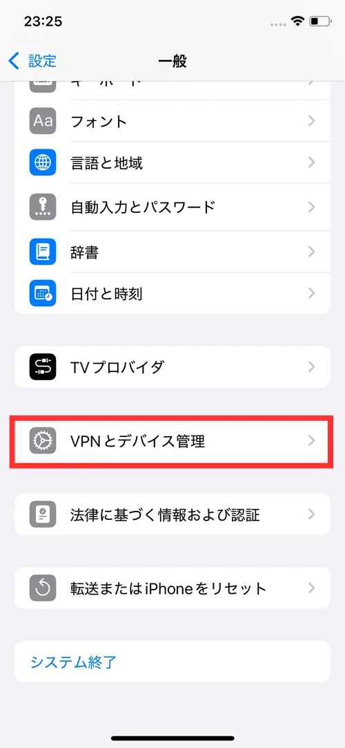 正常に完了すると「VPNとデバイス管理」から「構成プロファイル」の項目が削除されます。
