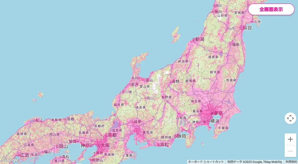 楽天モバイルは人口カバー率99.9%を達成しているため、国内のほとんどのエリアで利用することができるとされています。考えにくいですが、楽天モバイルの回線に接続できない場合は対応エリア外で利用している可能性があります。