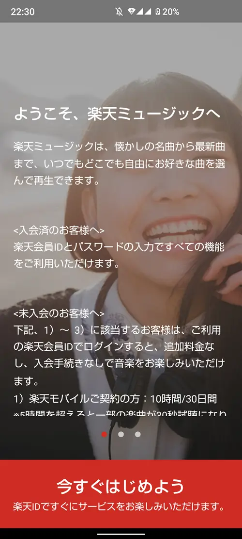 楽天IDでログインをすると楽天ミュージックで配信されている楽曲を1曲/30秒間無料で試聴することができます。