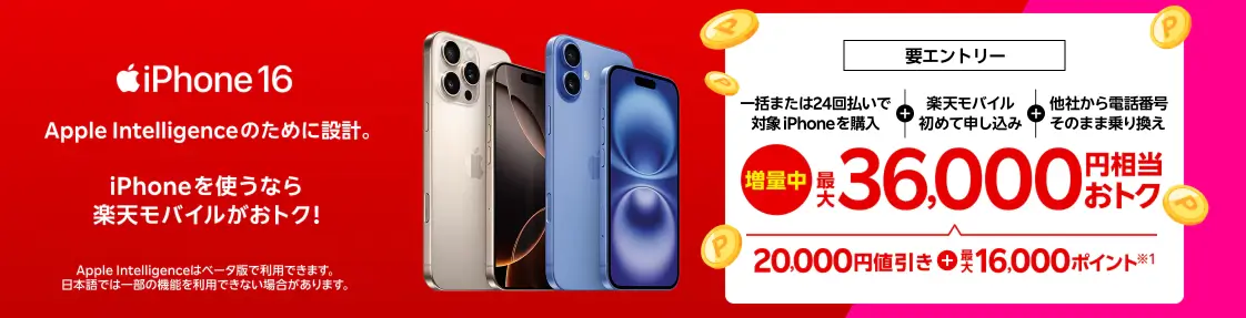 iPhoneなら、2025年12月時点で最大36,000ポイント還元。iPhone 16シリーズをはじめ、iPhone 17、iPhone 15などから選ぶことができます。