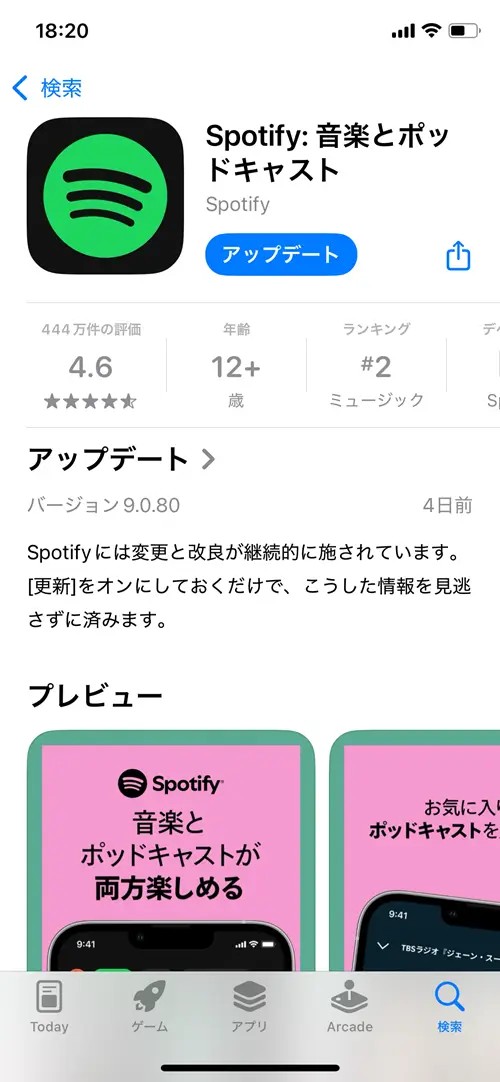 Spotifyアプリを最新バージョンにする